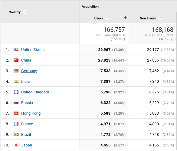 La mayoría de nuestros usuarios son de los Estados Unidos y China.