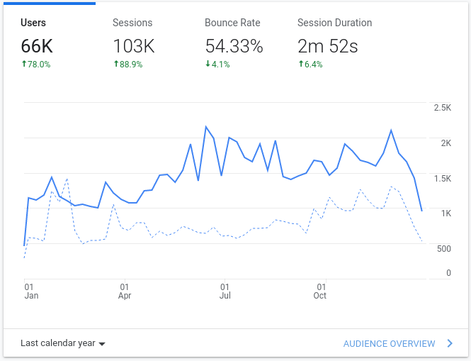 Nous recueillons des statistiques non personnalisées sur nos documents à l'aide de Google Analytics. En 2021, nous avions parfois plus de 2 000 visiteurs uniques par semaine.