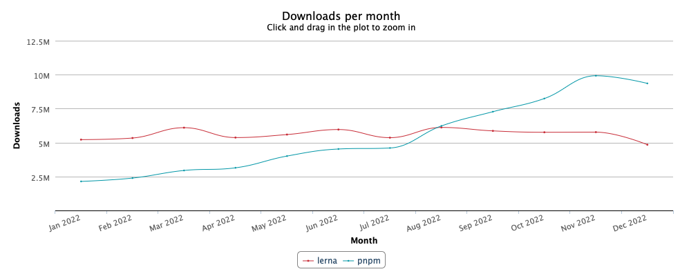 Mon objectif cette année était de battre Lerna en nombre de téléchargements. Nous avons pu atteindre cet objectif en août :